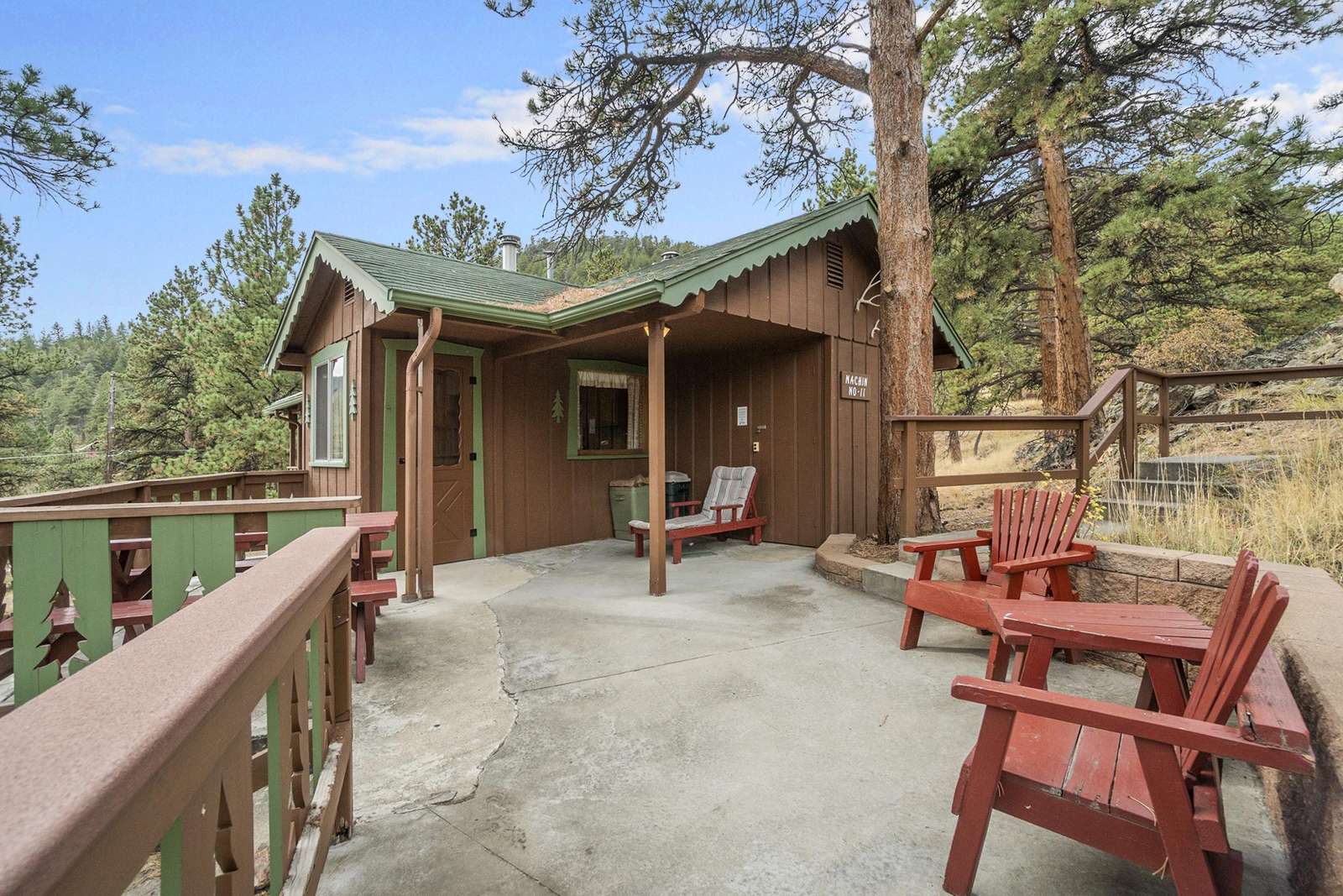 Nestled in the whispering pines of Estes Park, Machin's Cottage 11 awaits you! This charming top level unit features two snug bedrooms, a spacious bathroom complete with all the vanity space you could wish for, and a full kitchen – perfect for unwinding after a day exploring RMNP.