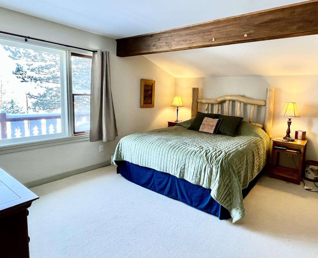 Situated at the base of Eagle Cliff Mountain, the property is set in a quiet, spread-out residential neighborhood away from the bustle of town. Wildlife sightings are common, adding to the authentic mountain experience. Downtown Estes Park is approximately 2.5 miles away, the Beaver Meadows entrance to Rocky Mountain National Park is less than 2 miles, and you can walk up the road to access hiking trails directly into RMNP.